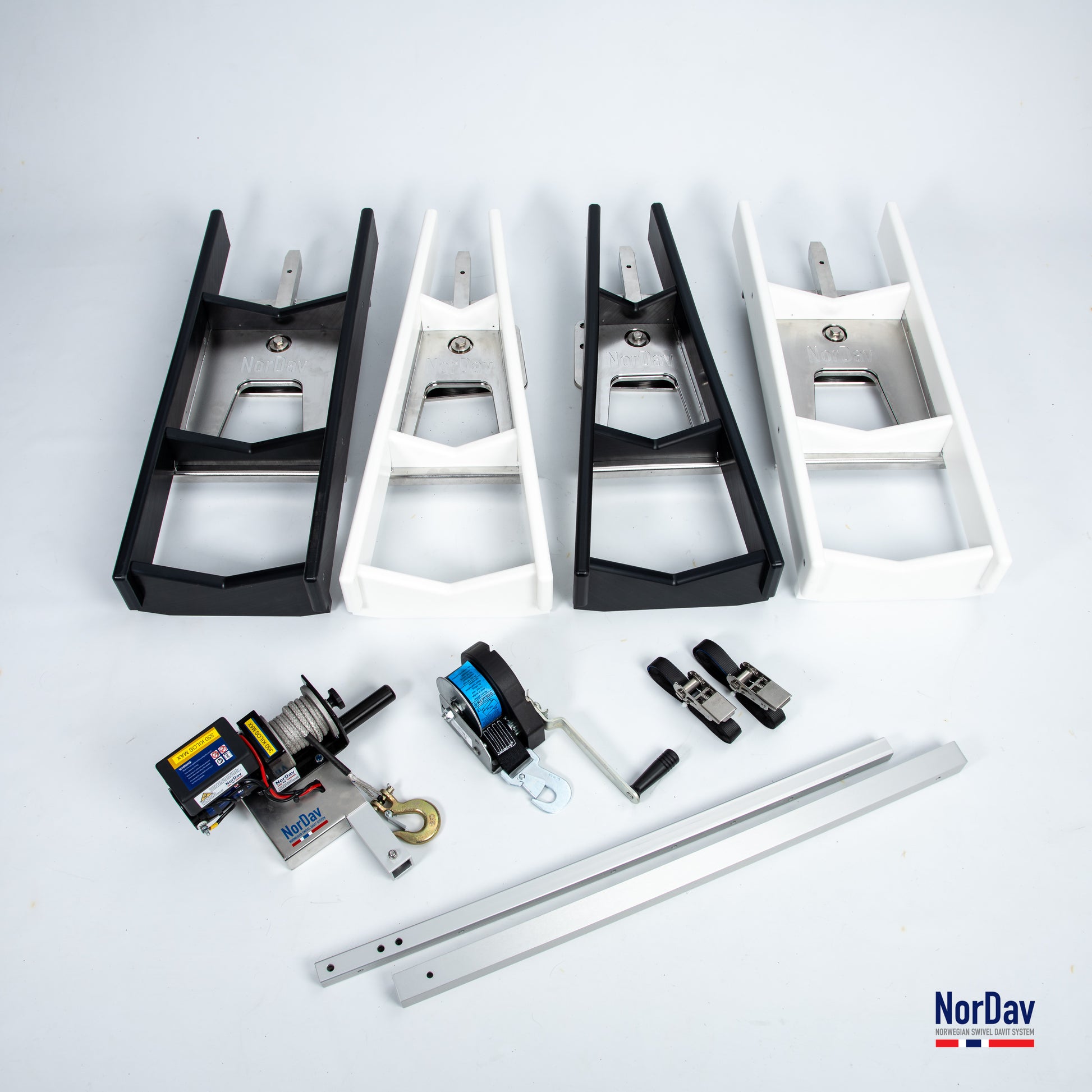 Professional davit for your dinghy available in black design. The design of the NorDav makes it easy to pick up larger dinghies, jet skis or inflatables. It’s delivered with manual winch to facilitate picking up and launching. H-Design is introduced to allow greater support for vessels with less V shape on the hull, like Jet Skies, personal watercraft etc.